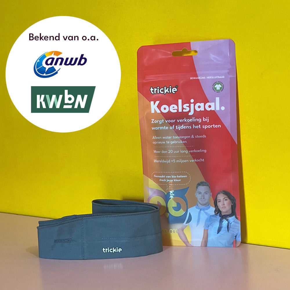 The Trickie® cooling scarf is also available at one of the many ANWB stores and is available through the Royal Dutch Hiking Association (KWbN) .