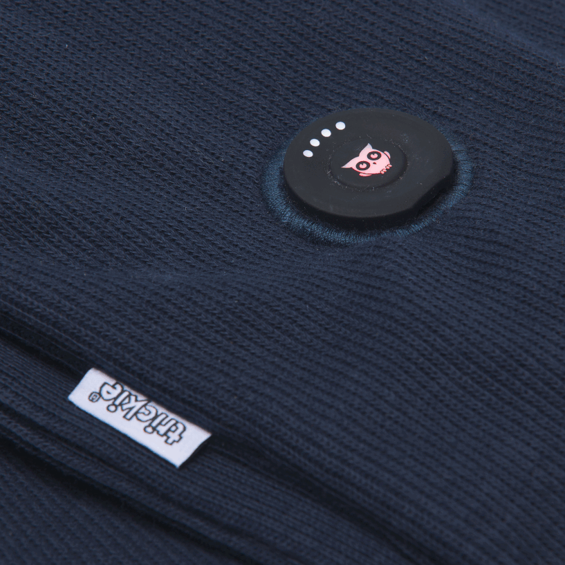 Het oplaadpunt van de PowerScarf bevindt zich onder de bedieningsknop. Via de USB-C ingang kun je de interne accu opladen zonder deze te verwijderen. Gebruik hiervoor de meegeleverde 5V USB-adapter of een powerbank (zoals de Trickie PowerBank). De LED-indicatoren laten zien wanneer het laden bezig is of voltooid is.