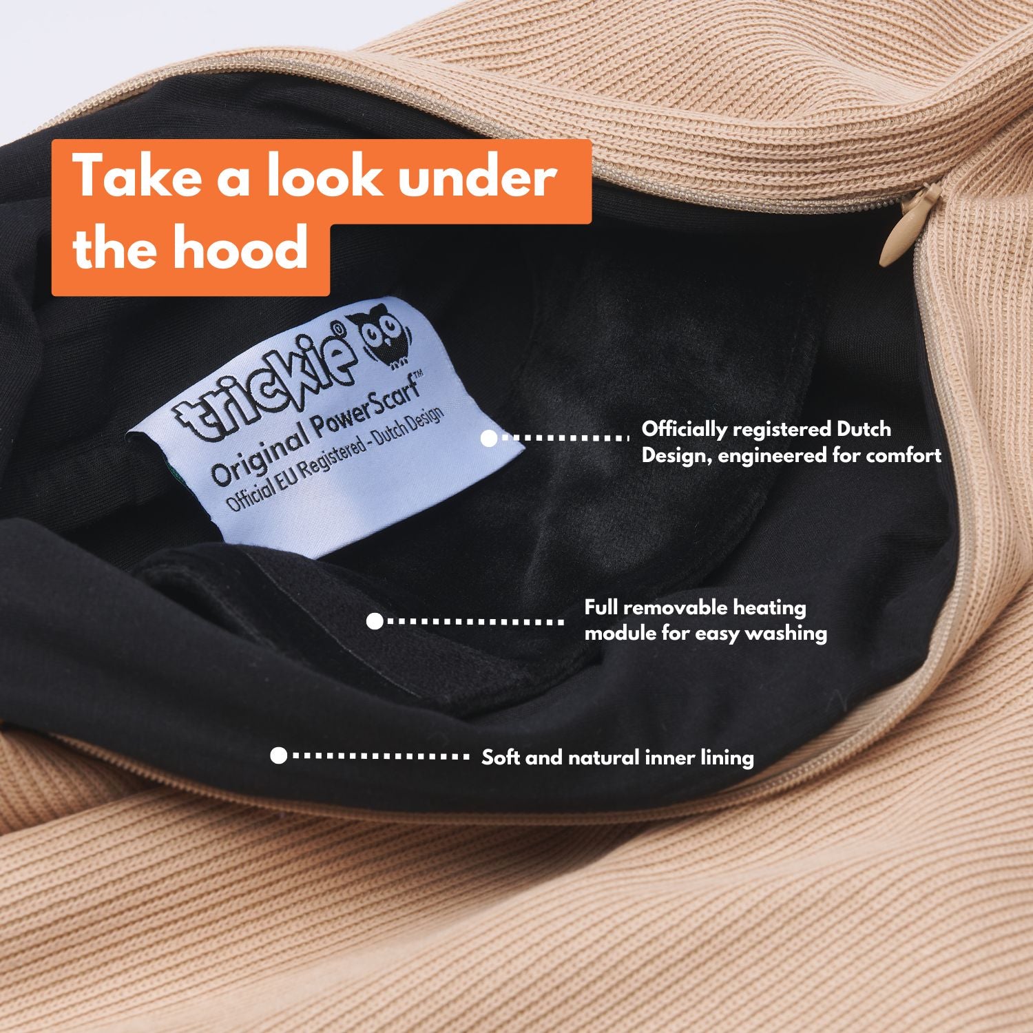 De PowerScarf is zo ontworpen dat je het hele technische gedeelte in één keer kunt verwijderen. Zo was je de sjaal veilig, zonder elektronica, en kun je desgewenst later eenvoudig een losse hoes bestellen. De binnenkant is gevoerd met een zachte, natuurlijke stof voor maximaal draagcomfort en een mooie, luxe uitstraling.
